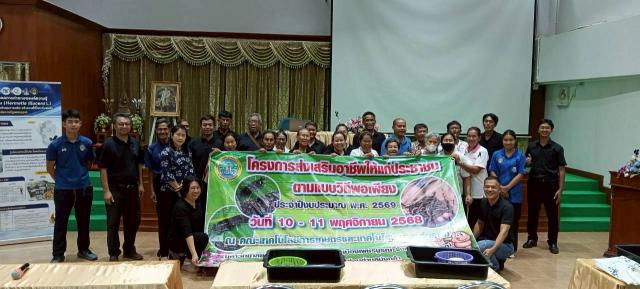 วันที่ 11 พฤศจิกายน 2568 ห้องประชุมราชภัฏกสิการ คณะเทคโนโลยีการเกษตรและเทคโนโลยีอุตสาหกรรม อบรม เรื่อง การเพาะเลี้ยงหนอนแมลงวันลาย (Black Soldier Fly : BSF)