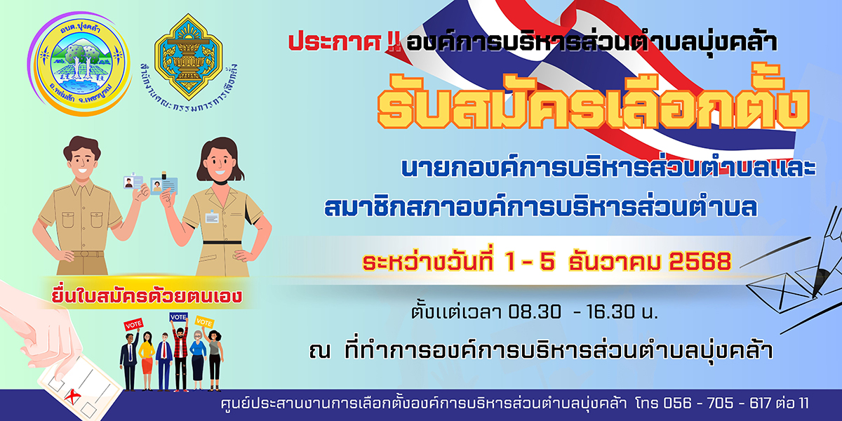 สำนักงานองค์การบริหารส่วนตำบลบุ่งคล้า หมู่ที่ 13 ตำบลบุ่งคล้า อำเภอหล่มสัก จังหวัดเพชรบูรณ์ 67110 โทรศัพท์ : 056-705617 โทรสาร : 056-705618 E-mail : saraban_06670310@dla.go.th www.bungkla.go.th